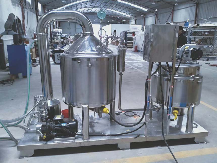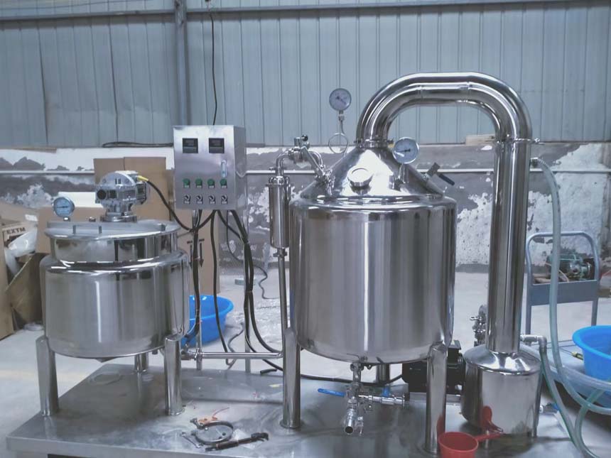 3 、預熱罐、濃縮罐的夾層內加滿水,以防加熱器干燒;夾層出氣口嚴禁封閉;接好冷凝器的冷卻水管,冷卻水底進高出。